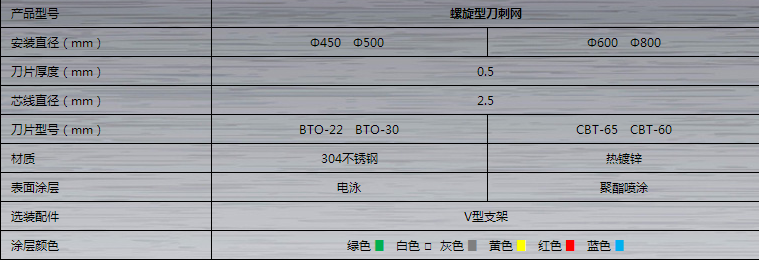 刀片刺繩的生產(chǎn)參數(shù)分為,刀長度、刀寬度、刀厚度、刀間距、芯線。大多數(shù)刀片刺繩是一圈一圈來使用的。所以還有必須有每圈的直徑、一圈和一圈直徑的間距。
