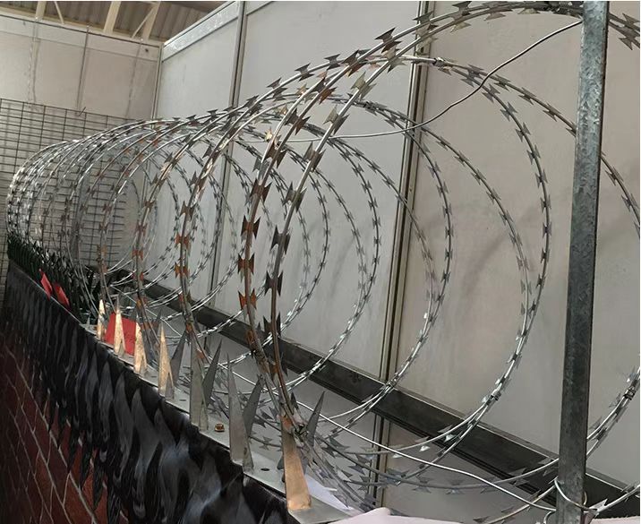目前, 各國已將刀片刺網(wǎng)廣泛用于軍事重地、監(jiān)獄、政府機(jī)關(guān)、銀行、警戒區(qū)圍墻、私人住宅、別墅的圍墻、門窗、高速公路、鐵路護(hù)欄、以及邊境線等防護(hù)保安。