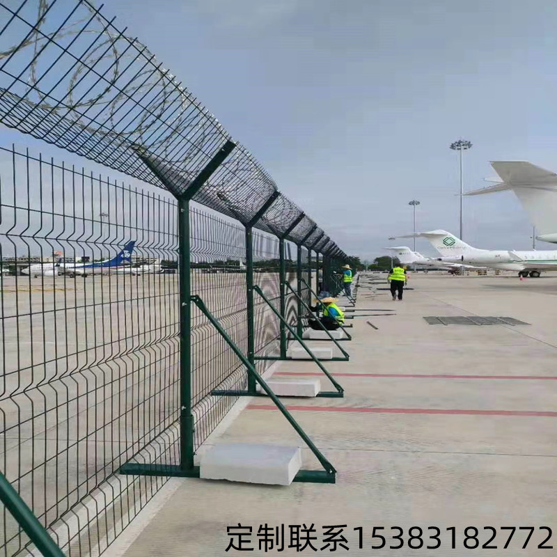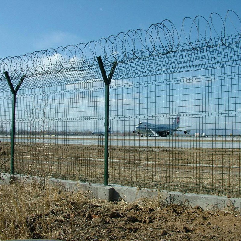 機(jī)場飛行區(qū)圍界網(wǎng)的組成多由Y型立柱+鋼筋焊接網(wǎng)片+蛇腹式刀刺網(wǎng)組合而成,大多數(shù)時候叫做機(jī)場鋼筋網(wǎng)圍界、機(jī)場鐵絲網(wǎng)圍界或者機(jī)場防護(hù)網(wǎng),但是這類防護(hù)網(wǎng)不只是應(yīng)用在機(jī)場。由于這種鋼筋網(wǎng)結(jié)構(gòu)有很好的隔離和防攀爬功能,可以應(yīng)用在很多地方,例如廠區(qū)、園林、軍事、邊防等等。安平縣艾瑞金屬絲網(wǎng)有限公司生產(chǎn)的機(jī)場圍界網(wǎng),專注于高質(zhì)量、安全性,隨著市場的不斷更新迭代,我們出品了多款機(jī)場鋼筋網(wǎng)圍界,滿足不同地域、不同級別、不同環(huán)境的需求。