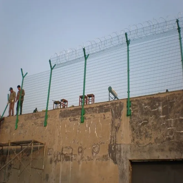 看守所、武警中隊獄墻巡邏道防攀爬隔離網(wǎng)常見三種安裝方式