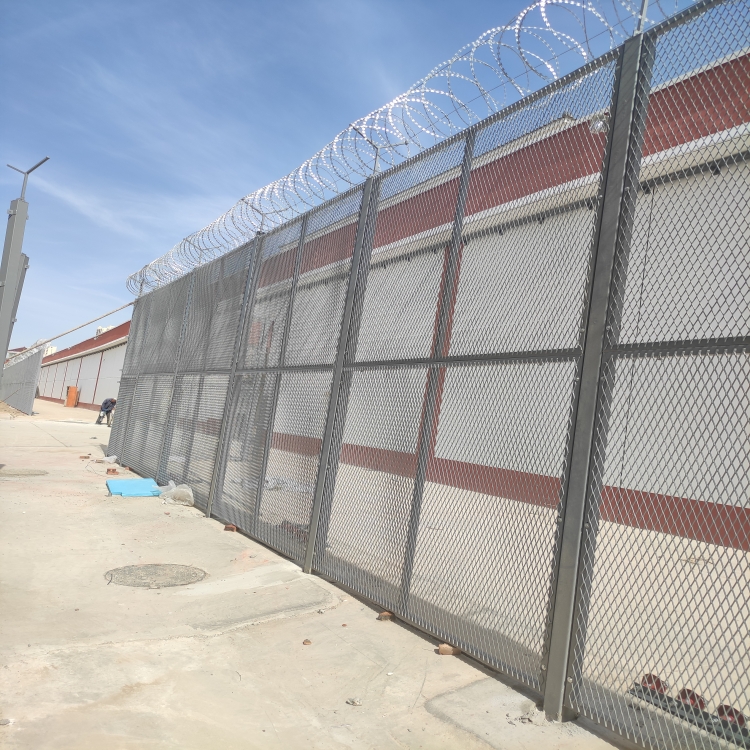 緊密、網面平整、網孔均勻、鋒銳利、防攀爬、抗腐蝕性強等特點。建設于監獄的內外墻地面及高墻之上,網墻內側或頂部加裝蛇腹形刺網,形成一道高不可攀、難以逾越的隔離障礙。配合高壓打擊電網、各種監控報警設備確保監獄安全萬無-失。 產品特點:濟南監獄防攀爬隔離網(監獄鋼絲網)具有堅固耐用、美觀大方、鋒銳利、防攀爬、抗強風、抗沖擊、抗剪切、抗腐蝕等優異特點。用途:監獄鋼網墻主要用于監獄、看守所、拘留所、戒毒所、軍事禁區、邊防線等高安全場所。