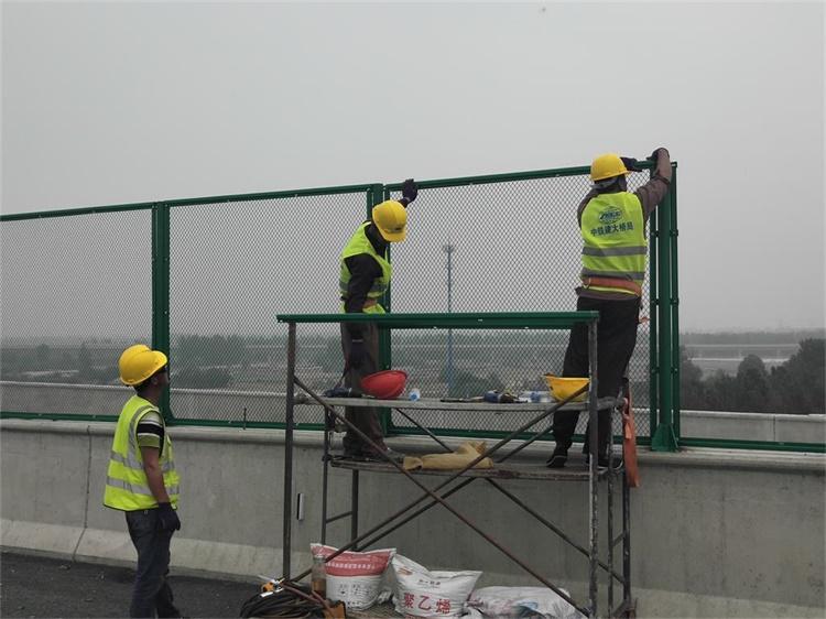 橋梁防落網(wǎng)是指設(shè)置于橋梁上的鐵絲網(wǎng)圍欄,安裝目的是為 了防止失控車輛及其他物品落出橋外,橋梁防拋網(wǎng)也叫防落網(wǎng)、防護(hù)網(wǎng)、防落物網(wǎng),具有使車輛不能突破、下穿、 翻越橋梁以及 美化橋梁建筑的功能。