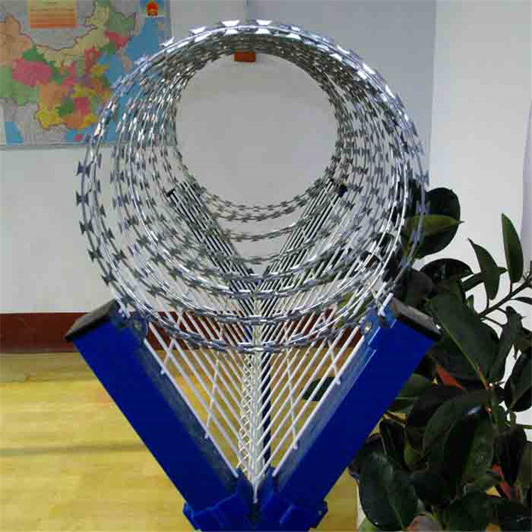 的低碳鋼絲、鍍鋅、涂塑、噴塑熱鍍鋅刺繩防腐形式:電鍍、熱鍍。 規(guī)格(安裝方法不同):1.(蛇腹式) 螺旋式刀片刺繩;2.直線型刀片刺繩;3.平板式刀片刺繩;4.刀片刺繩焊接網(wǎng):螺旋型、直線型、螺旋交叉型三種形式。熱鍍鋅刺繩特點(diǎn):1.具有美觀、經(jīng)濟(jì)實(shí)用、防阻效果好、施便利防護(hù)性能好2.具有可靠的保護(hù)功能造價(jià)低,主要是低碳鋼絲之間的擰接3.安裝方便快捷,只是簡(jiǎn)單安裝就可該產(chǎn)品具有嚇阻效果好、美觀、施工便利,經(jīng)濟(jì)實(shí)用熱鍍鋅刺繩用途:用于許多國(guó)家的工礦企業(yè)、園林公寓、邊防哨所、軍事領(lǐng)域、廠區(qū),私人別墅,小區(qū)樓房一樓,工地,銀行,印鈔廠,軍事機(jī)地,平房,低墻等地的防盜,居民區(qū)各種管道防爬使用。