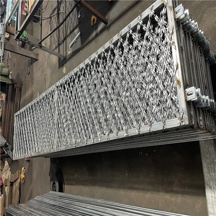 監(jiān)獄刀片刺網(wǎng)具有美觀、經(jīng)濟(jì)實(shí)用、防阻效果好、施工便利等優(yōu)異特點(diǎn),刀片刺網(wǎng)由熱鍍鋅鋼板或不銹鋼薄板沖壓出尖銳的刀片狀,高張力鍍鋅鋼絲或者不銹鋼絲做芯線組合而成的阻絕器材。由于刺網(wǎng)造形獨(dú)特不易觸摸,因而能達(dá)到極好的防護(hù)隔離效果。刀片刺網(wǎng)已被廣泛應(yīng)用于工礦企業(yè),園林公寓,邊防