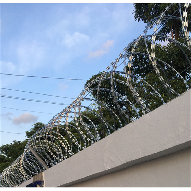 蛇腹型刀刺網工藝由熱鍍鋅鋼板或不銹鋼薄板沖壓出尖利的刀片狀,高張力鍍鋅鋼絲或刀片刺繩者不銹鋼絲做芯線組合而成的阻絕器件。于剌網造形共同不易接觸,因此能抵達好的防護阻隔作用。產品的首要原料有鍍鋅板和不銹鋼板。