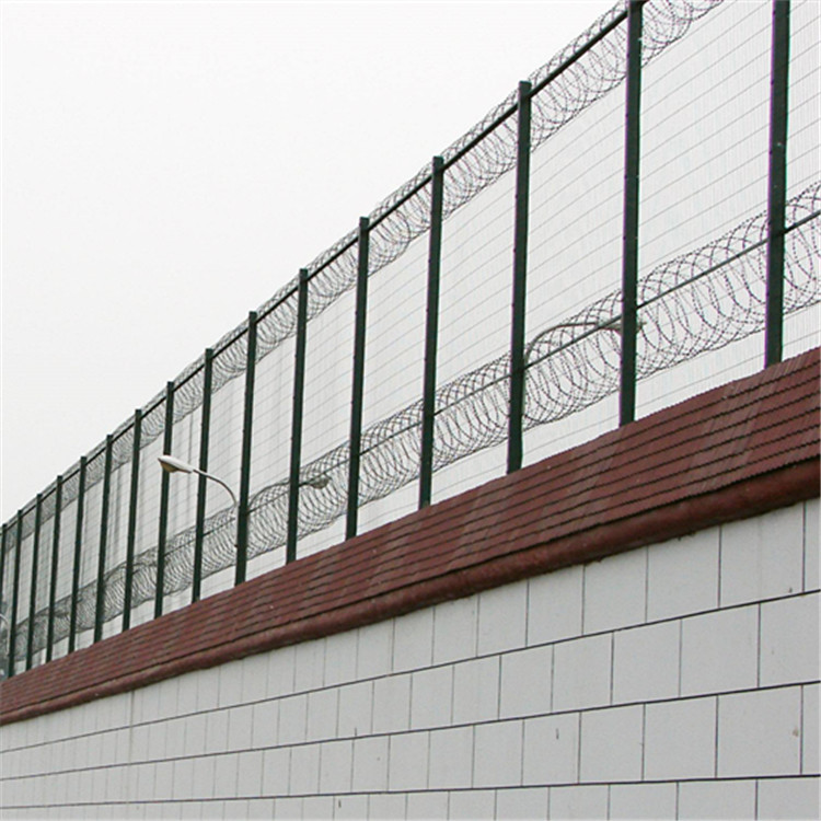 監(jiān)獄防護(hù)網(wǎng)是一種新型防護(hù)網(wǎng),也叫Y型刀片護(hù)欄網(wǎng),它由銳利尖角鍍鋅鋼板或不銹鋼薄板做成刀片刺網(wǎng),鋼絲做芯線組合而成的監(jiān)獄圍墻防護(hù)利器!監(jiān)獄刀片護(hù)欄網(wǎng)具有嚇阻、防翻越等效果。監(jiān)獄刀片護(hù)欄網(wǎng)可平地安裝,也可在圍墻上二次安裝,有效防止攀逃。直刺式刺網(wǎng)隔離帶,是用柱體和普通刺繩橫、縱、斜向交叉綁定成刺網(wǎng)隔離帶。 監(jiān)獄刀片護(hù)欄網(wǎng)的材質(zhì)堅(jiān)硬,具有高強(qiáng)度,高張力,造型設(shè)計(jì)獨(dú)特,不宜觸摸,因而能達(dá)到極好的防護(hù)隔離效果。