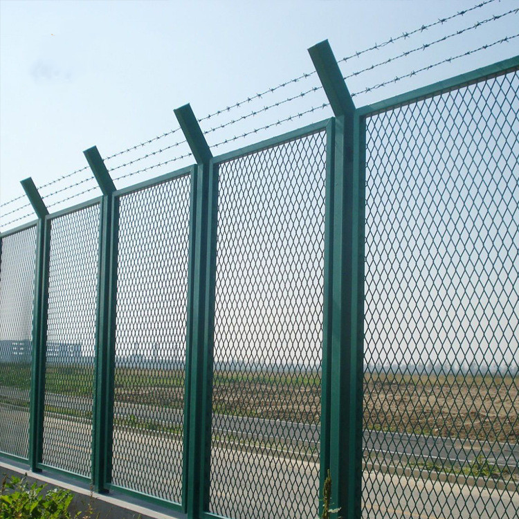 綜合保稅區(qū)圍墻金屬網(wǎng):采用分金屬網(wǎng)狀式,由基座、金屬網(wǎng)狀鋼管架,鐵絲網(wǎng)組成。